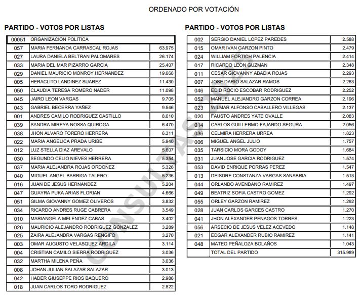 Camara por Bogotá Boletín #20 con el 98% escrutado