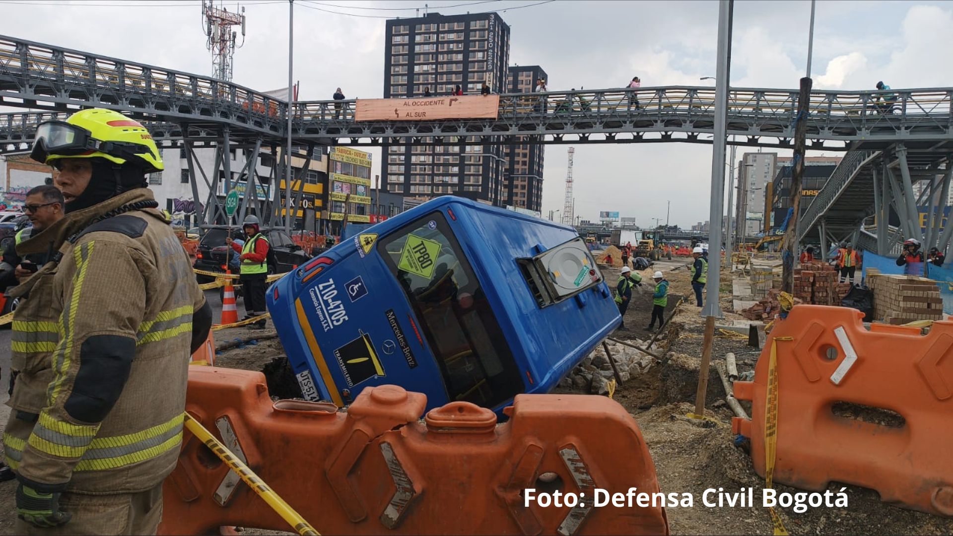 El informe oficial indica que al menos cuatro personas resultaron lesionadas luego de que un bus del Sistema Integrado de Transporte Público (SITP) se volcara tras caer en un hueco perteneciente a una obra en ejecución de TransMilenio, en la intersección de la avenida carrera 68 con calle 9, en la localidad de Puente Aranda.
