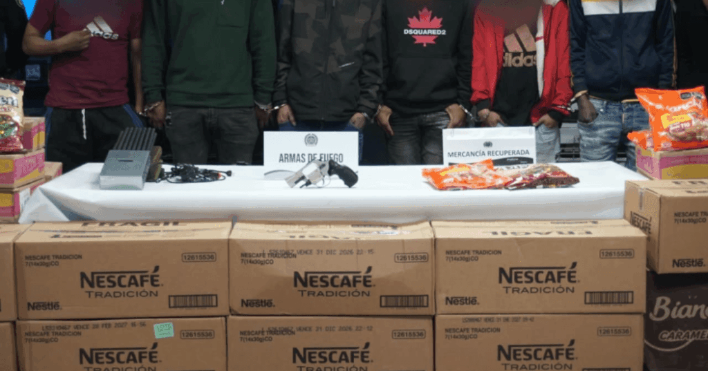 Luego de una alerta ciudadana recibida a través de la Línea 123, en la que reportaron ruidos y movimientos sospechosos al interior de un establecimiento comercial, los uniformados se desplazaron hasta el lugar y sorprendieron a las ocho personas mientras sustraían mercancía y la cargaban en dos vehículos tipo chana, con los que pretendían huir.