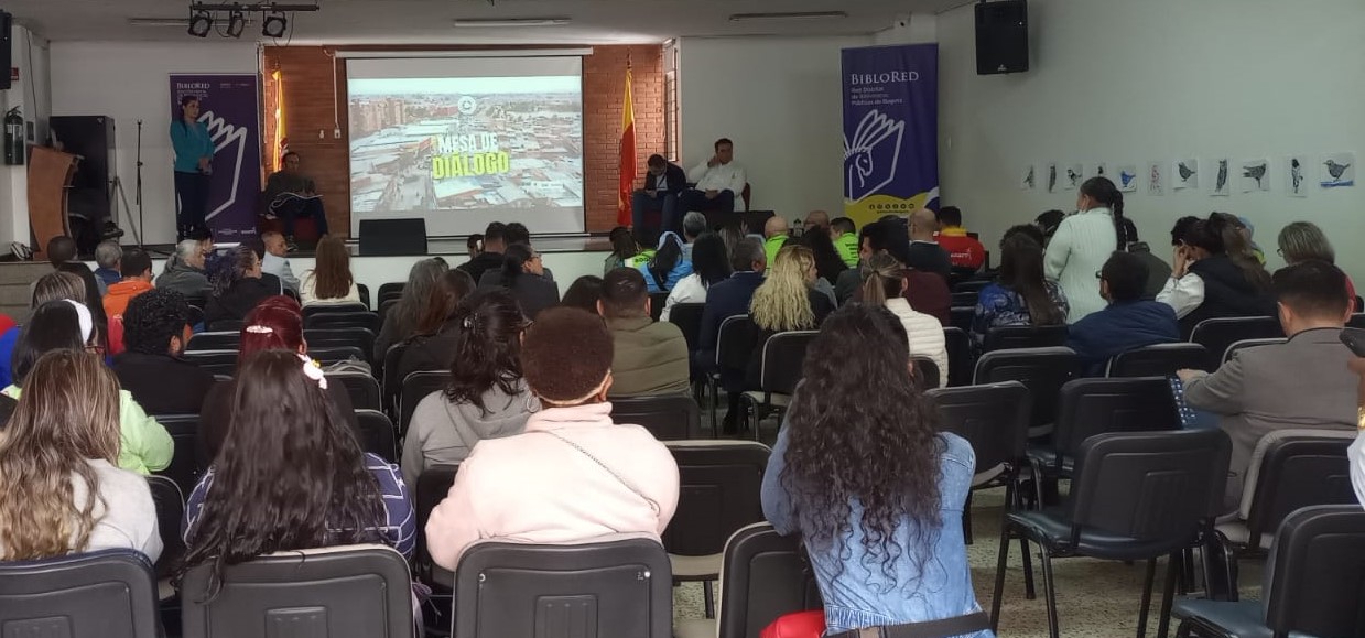 En el auditorio de la Biblioteca Francisco José de Caldas, habitantes de la localidad de Suba participan en una jornada de diálogo y socialización convocada por la Gerencia Local, con el fin de conocer los avances de la estrategia Gerencias de la Solución.